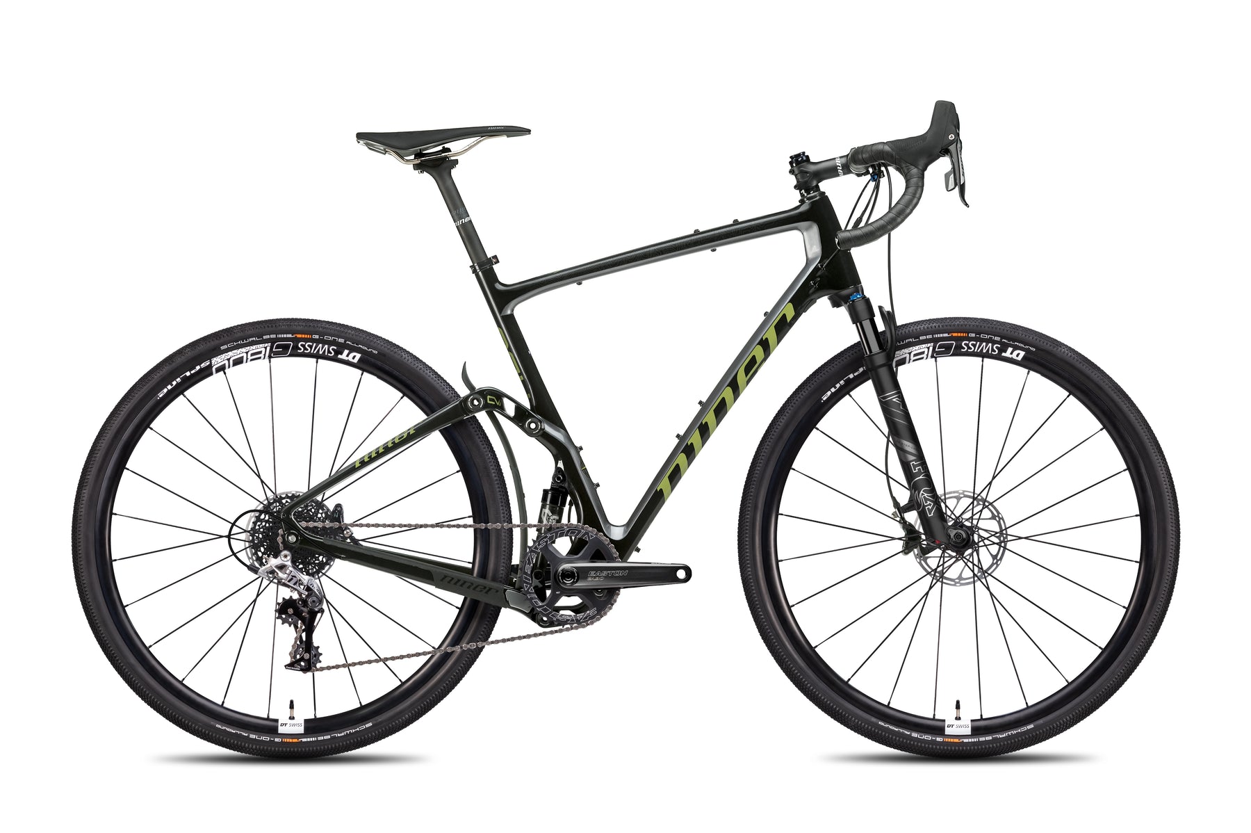 NINER RDO CARBON FIBER: 50MM CVA SUSPENSION; FORGED ALLOY LINKS; ENDURO MAX PIVOT BEARINGS; INTERNAL CABLE ROUTING; INTEGRATED FENDER; BOTTLE, BAG, AND RACK MOUNTS; FLAT MOUNT; 12X142 THRU AXLE